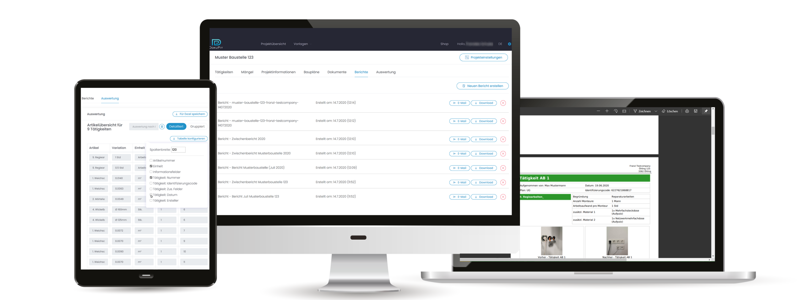 Die dokumentierte Beweissicherung lässt sich über die Verwaltungsplattform per Knopfdruck fertigstellen. Die Fotos und alle Informationen sind automatisch sortiert und ergeben einen lückenlosen PDF-Bericht. Baumängel oder Bauschäden lassen sich ebenfalls an das Bauprojekt anhängen. Der ideale Begleiter für jedes Beweissicherungsverfahren.